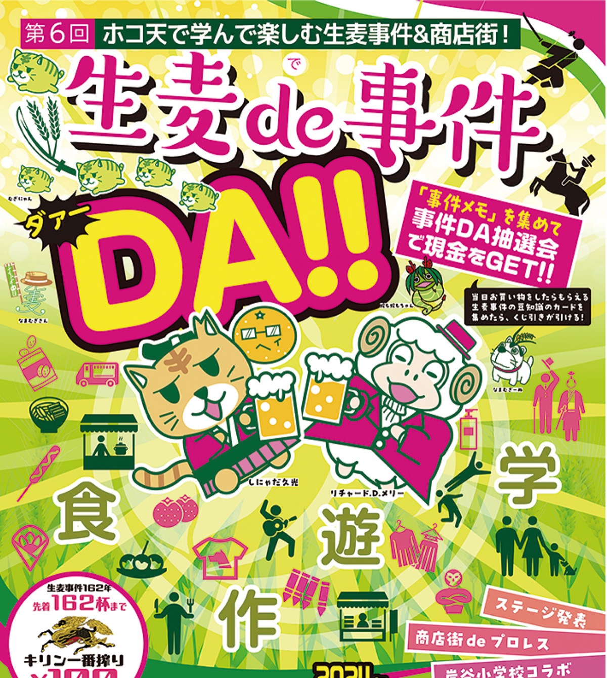 生麦駅前通り商友会が主催し、生麦盛り上げ隊と岸谷商栄会協同組合が後援。6回目の開催となる同イベントは、地元が誇る歴史の1つ「生麦事件」を題材に、地域愛の醸成などを目的に毎年行われてきたもの。
