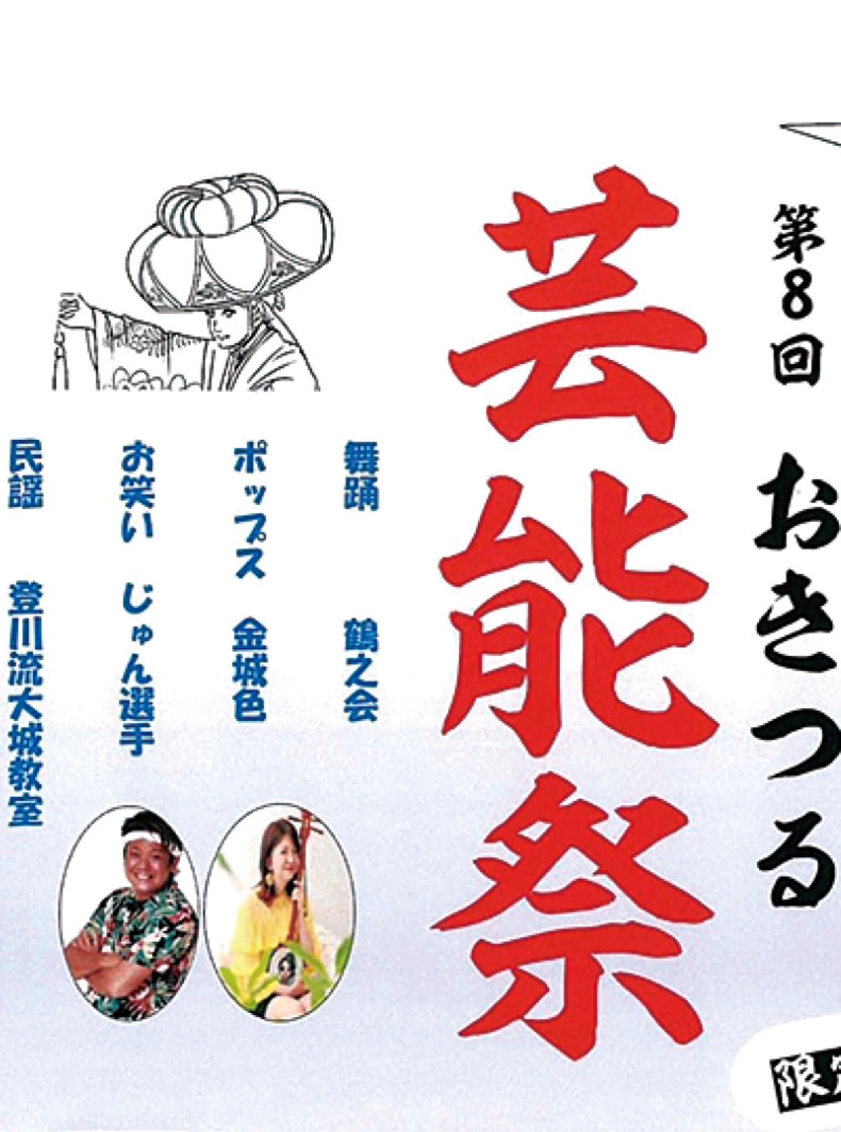 当日は、琉舞鶴之会による舞踊や金城色さんのコンサート、お笑い芸人じゅん選手のライブ、琉球民謡を研究する登川流大城教室による民謡が披露される。