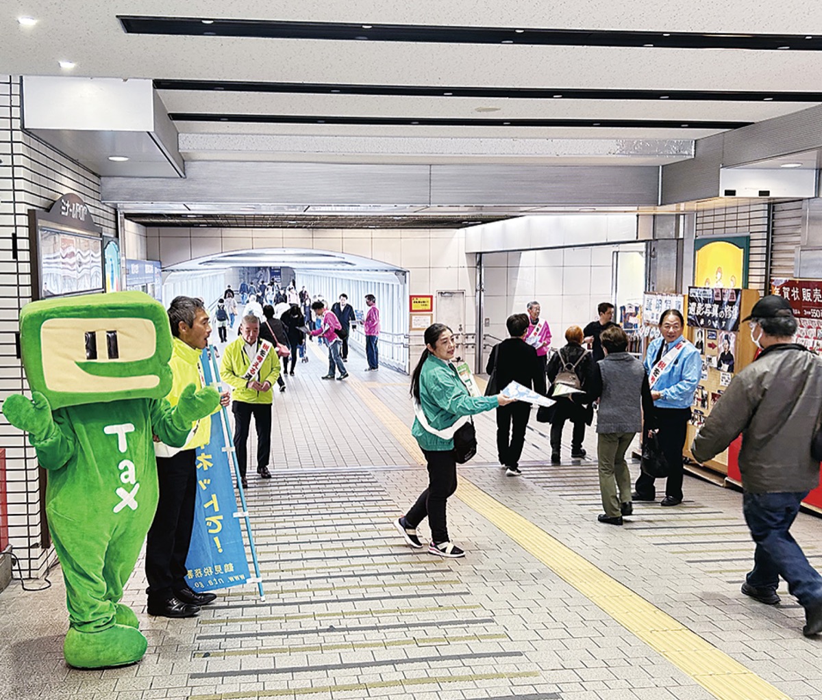 国税庁などが定める「税を考える週間」(11月11日〜17日)に合わせ、鶴見税務署と区内税務関係6団体による街頭広報が12日、JR鶴見駅周辺で行われた。