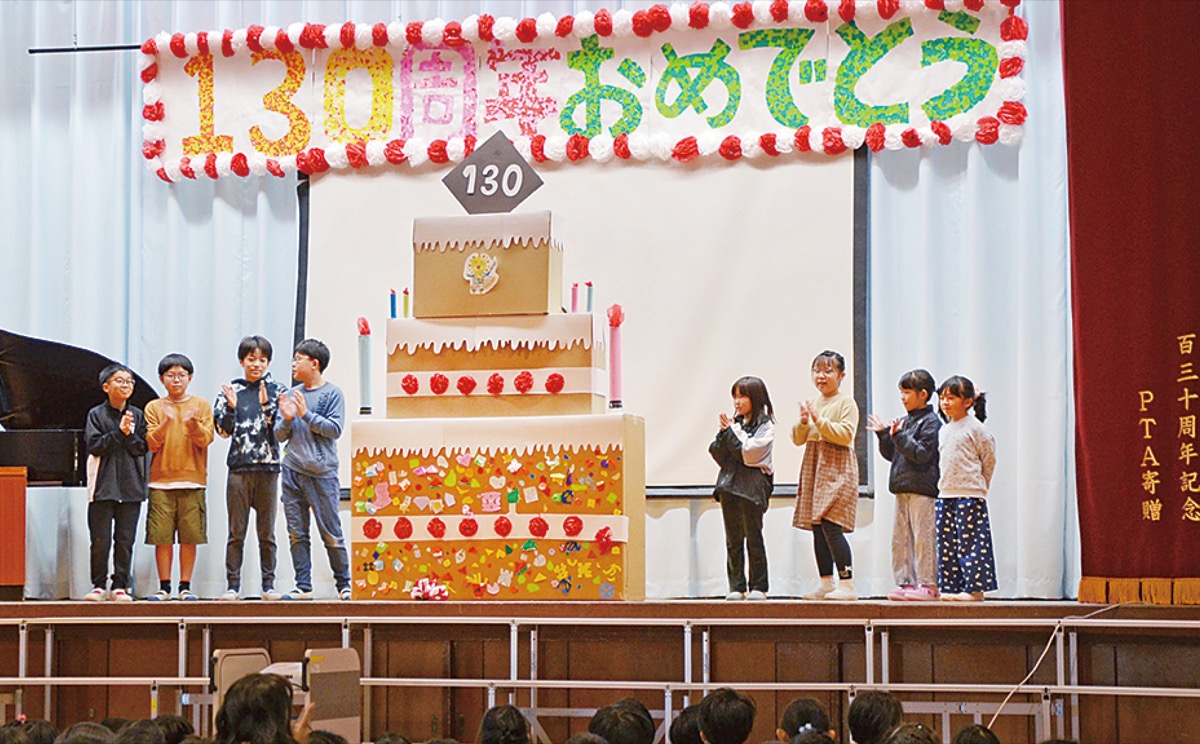 市立東台小学校が創立130周年を迎え、11月22日に記念式典が行われた。児童による「お祝いの会」ではお誕生日会や各学年の合唱が披露され、にぎやかなムードで周年を祝った。式典であいさつした源関正浩校長は参列した来賓に感謝を述べ、児童たちに「お祝いをするということは、その人のことを沢山知り、沢山好きになるということ。小学校や友達のことを沢山考え、今まで以上に好きになってください」と語りかけた。