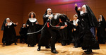 60分間のオリジナルストーリーの音楽劇では、藤原歌劇団正団員所属の?村恵さんや中畑有美子さんらが出演。喜劇のストーリーのなかで、オペラやブロードウェイの名曲を披露した。教室メンバーたちは、修道女や競艇会長・会長夫人、司教、教皇などの役で登場。堂々としたパフォーマンスを見せた。プロとのコラボレーションに会場は大盛り上がり。来場者した女性は「大笑いしながら聴いていた。ドリフのようなドタバタ劇に、しっかりとクラシック音楽が組み込まれていた」と笑顔で振り返った。
