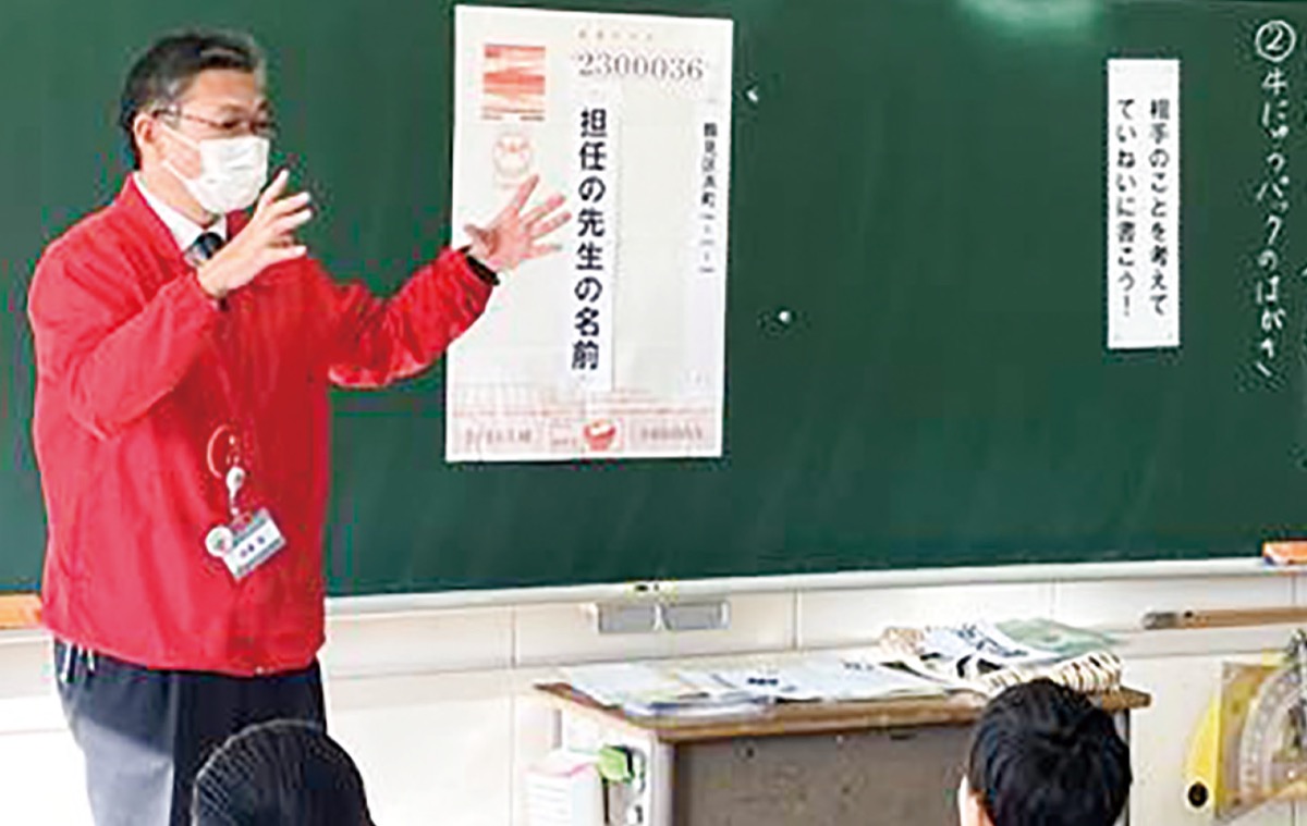 入船小学校で昨年末、区内郵便局による手紙の書き方授業が行われた。