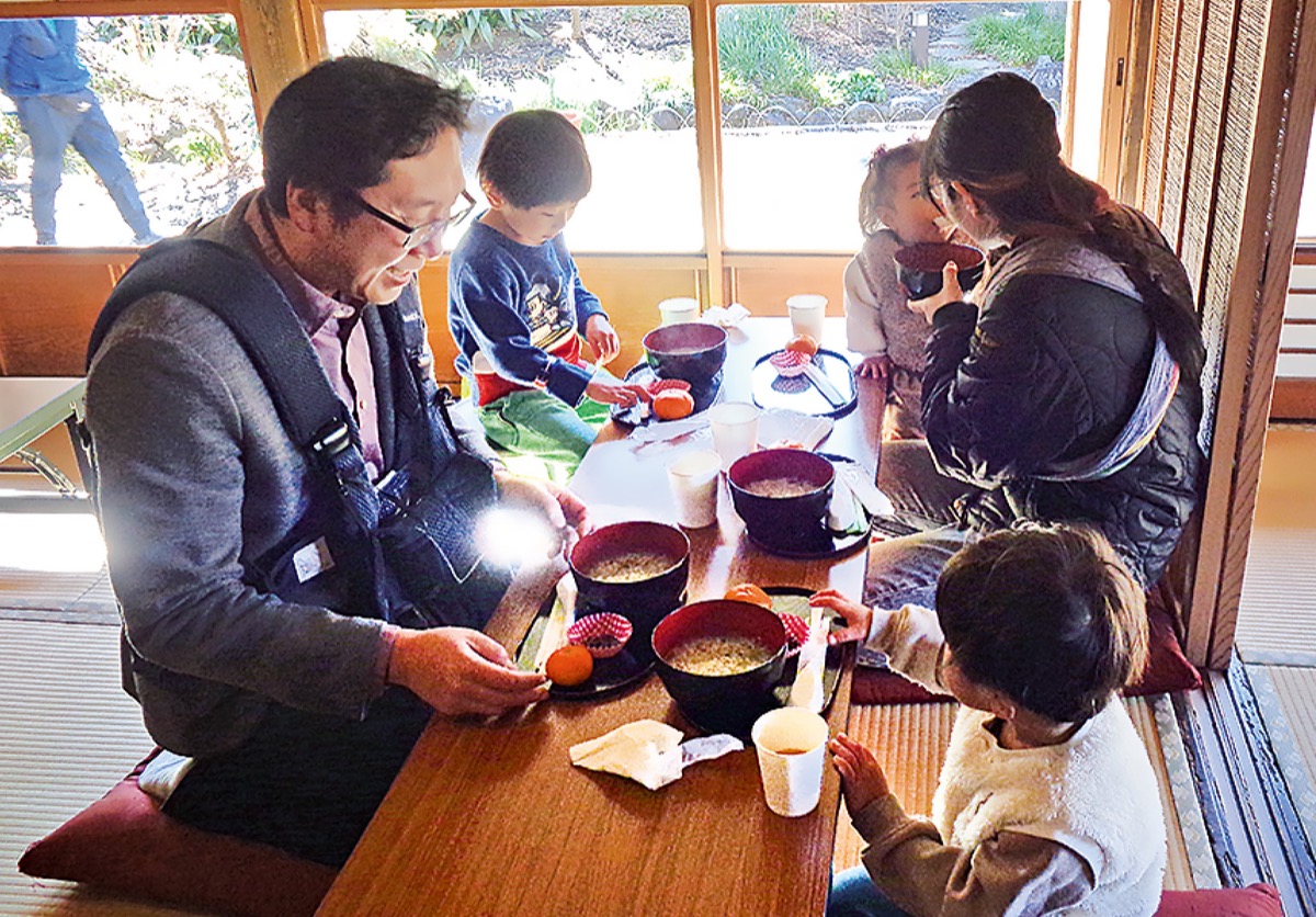 馬場花木園の旧藤本家住宅主屋で1月11日、人日の節句(七草の節句)のイベントとして七草がゆが振舞われた。