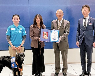1月29日にレクサス山下公園ショールームで行われた感謝状贈呈式で、同NPOのキンバリ・フォーサイス理事長は、感謝を述べ「ファシリティドッグがいれば、辛い検査や治療も頑張れるという子どもたちがいる」と説明。