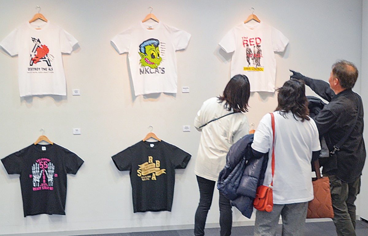 期間中には300人以上が来場。作品はイラストをプリントしたもの、オリジナルの刺繍を入れたもの、Tシャツに直に描いたものなど多様で、沖縄をテーマとしたものや、自分らしさを前面に押し出した作品も。地域イベントに紐づいた作品も多く並び、来場者は「数々のTシャツから新しいデザインの発想をもらえて、元気も分けてもらった」と楽しむ様子が見られた。
