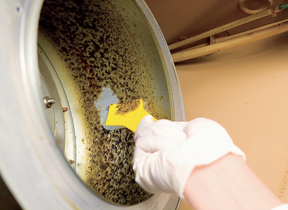 ダスキン東寺尾支店では、専門知識を持ったスタッフがフードの内側やフィルター、ファンだけでなく、家庭では取り外しが困難な部品も分解して徹底洗浄。油汚れでベトベトになった細部まで専用の洗剤を使ってピカピカにしてくれる。