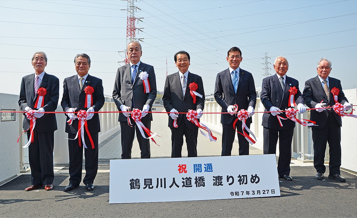 その後に行われた「渡り初め式」では、地元住民らが橋を渡り、橋の様子や鶴見川の景色を楽しんだ。黒川会長は「要望から10年。地元の悲願がようやく叶った。要望書提出はもちろん、橋を架ける場所の選定などで矢向、上末吉、江ケ崎地区が一致団結できて本当に良かった。この橋が両岸地域の更なる交流の“架け橋”となることを願います」と笑顔で語った。