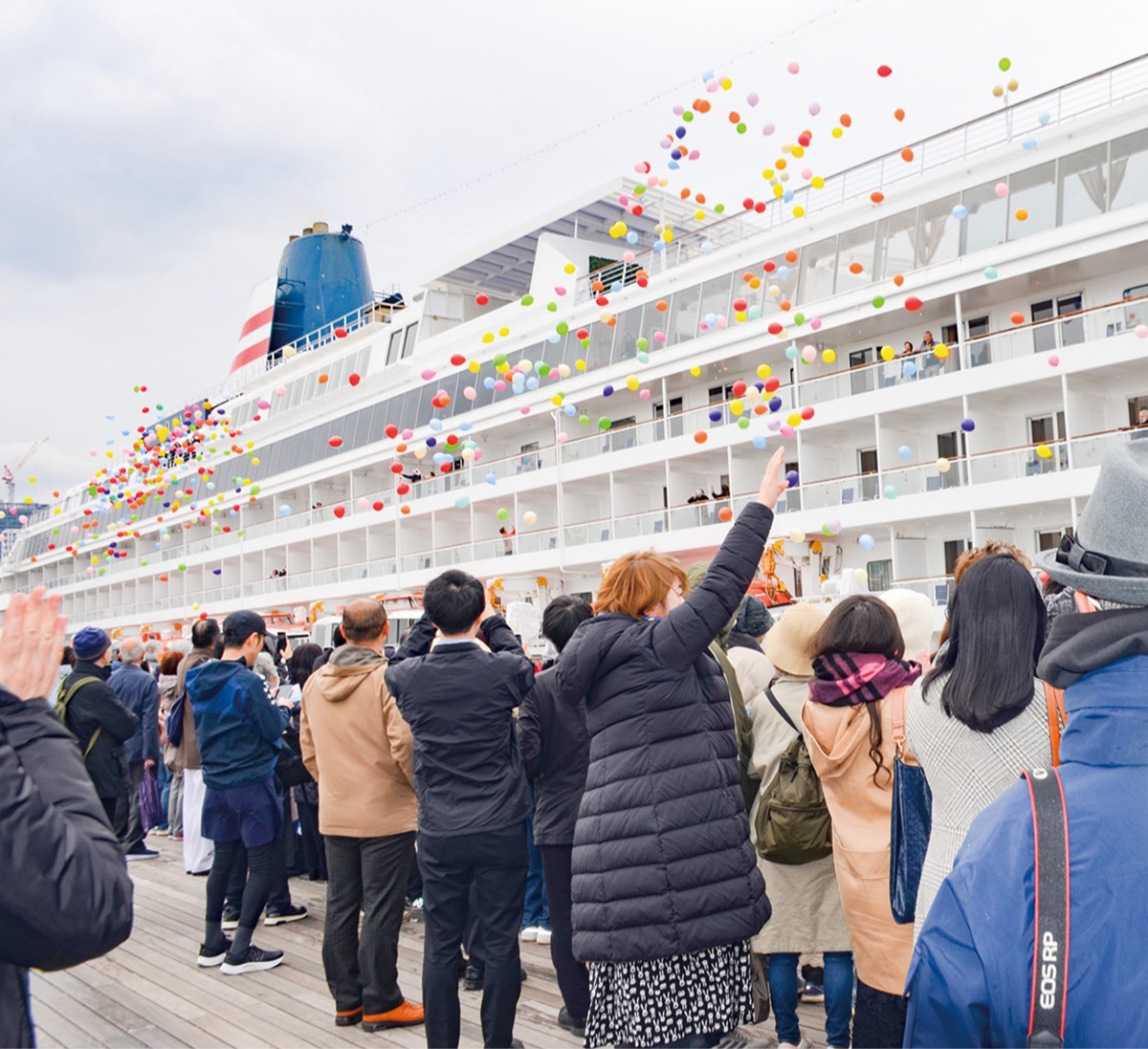 同日、大さん橋国際客船ターミナルで出港記念セレモニーを開催した。バルーンリリースや港中学校吹奏楽部の歓送演奏が行われ、多くの人が出港を見送った。