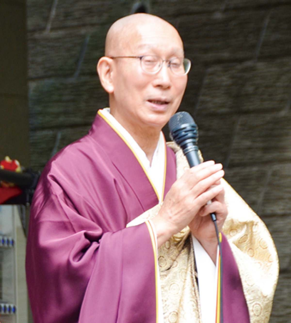 当日は地域住民や檀家ら約600人が来場。立像が安置された花御堂に甘茶をかけ無病息災を祈った。枡野俊明住職による法話では、釈迦の話をもとに命の尊さや個性の大切さが呼びかけられた。