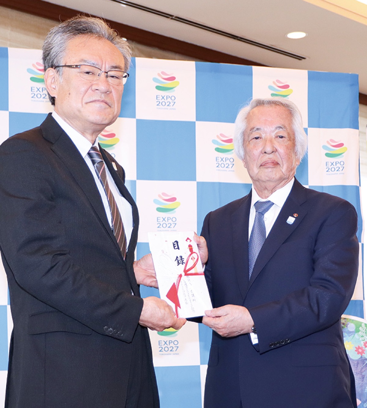 横浜商工会議所(上野孝会頭)は、2027年の「GREEN×EXPO 2027」(国際園芸博覧会)の開催に役立ててもらおうと、5月12日に戸塚カントリー倶楽部=旭区=でチャリティーゴルフ大会を開き、314万円を公益社団法人2027年国際園芸博覧会協会に寄付した=写真。