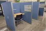 ところがコロナ禍を経て、利用者は以前の2割程度に。「コロナ禍でWEB上での会合が定着したことも要因の一つ」とボランタリー活動サポート課の齊木律子さんは話す。同センターはこのような現状を受け、昨年4月よりフリーwi-fiの導入、パーソナルワークスペースの試験運用を行ってきた。さらに、この4月からワークショップをサロンで開催できるようリニューアル。「発表やワークショップができ、50人まで入れる場所は市内でもなかなかない、と利用者には喜んでいただいています」(同課長・鈴木美保子さん)。オンラインミーティングが可能なパーソナルワークスペースも5席に増やして本格運用を開始し、これらを幅広く周知していくために、利用案内を記したリーフレットも作成している。