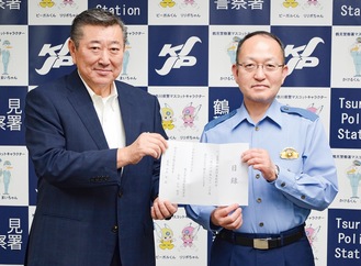 鶴見安全運転管理者会(山谷朋彦会長)は7月8日、署員の熱中症予防対策として鶴見警察署に清涼飲料水720本を寄贈した。