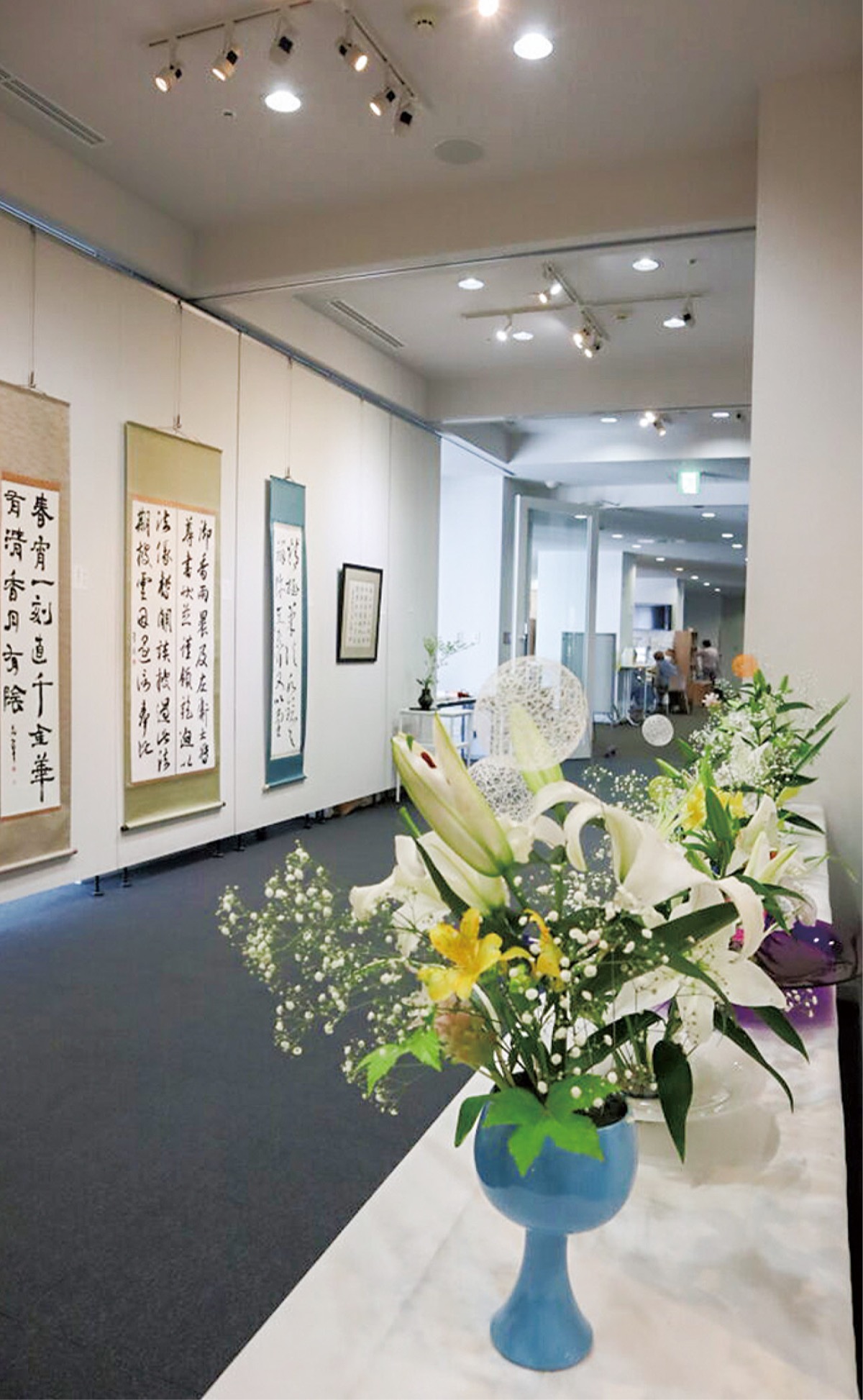 5回目となる今回は在校生と卒業生合わせて67人、100点ほどを出展。同校華道部や書道部の出展をはじめ、日本画や油絵、工芸、書道、生け花、イラストなど幅広い作品が展示される。