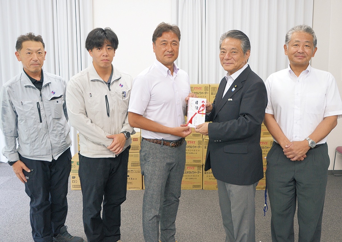 公共工事などを手掛ける(株)日工(吉岡幸弘代表)=市場富士見町=が7月11日、鶴見区社会福祉協議会に防災食など備蓄品の寄付を行った。