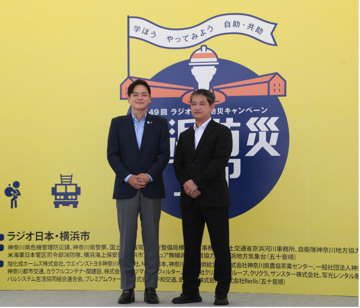 ステージではラジオ日本の番組の公開録音があり、毎週月曜日午後6時から放送されている「マツラジ」に出演するお笑いコンビ「スカイサーキット」の松本勇馬さんが登場。その中で星槎学園高等部の相模太鼓部が力強い演奏を披露した。ほかにも、災害をさまざまな角度から解説する特別番組の録音もあり、9月14日午後9時15分から10時30分まで放送される予定。
