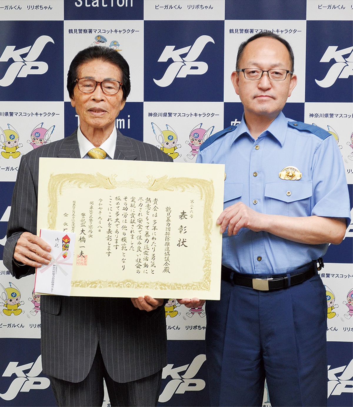 鶴見暴力団排除推進協議会(赤川順一会長)は9月19日、鶴見警察署で中西実署長から表彰状が贈呈された。