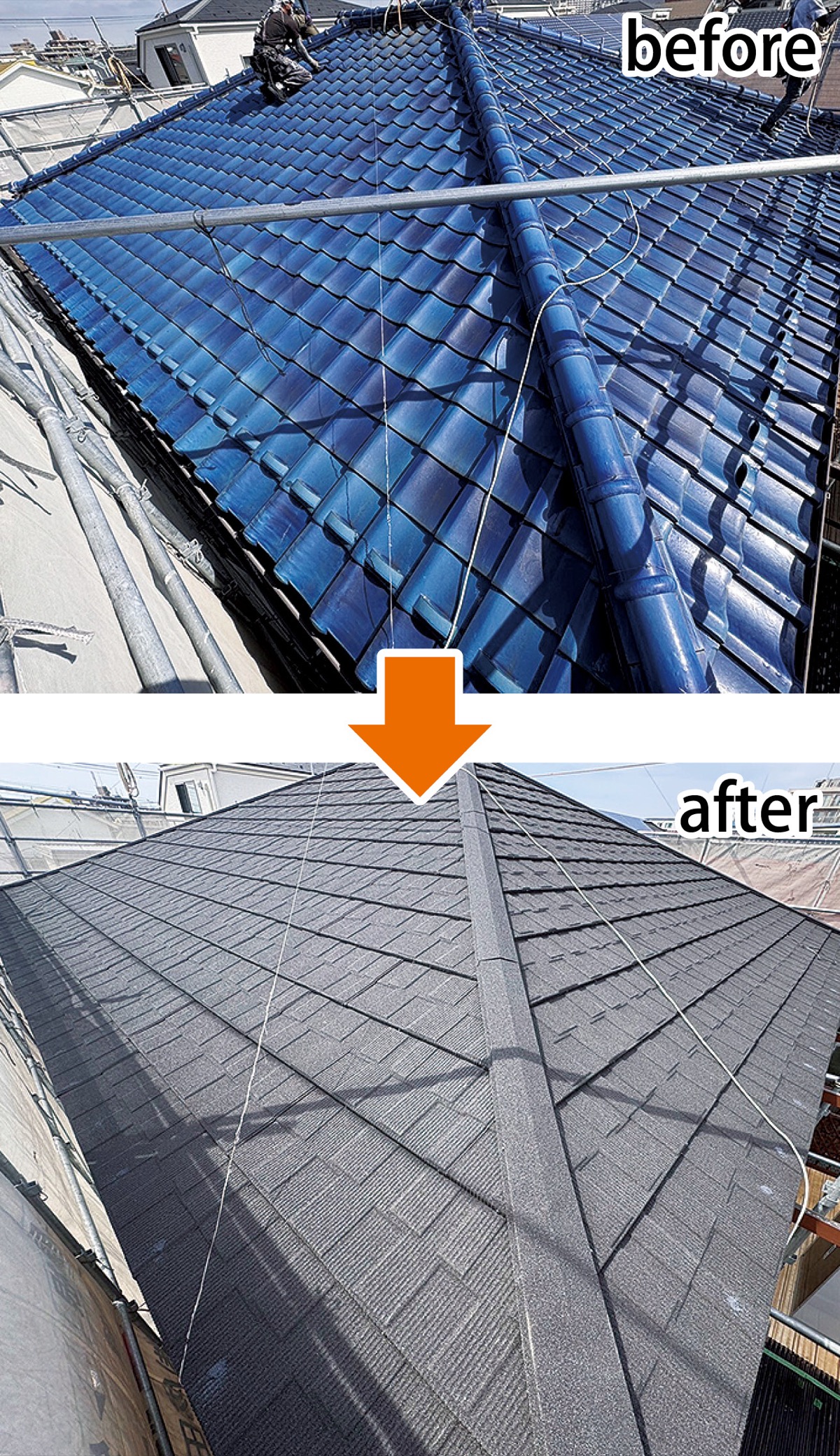 補修修理には様々な工法があるが、葺き替え工事=写真=は下地から補修・点検できるため、屋根の寿命を大きく伸ばせるのが特徴だ。