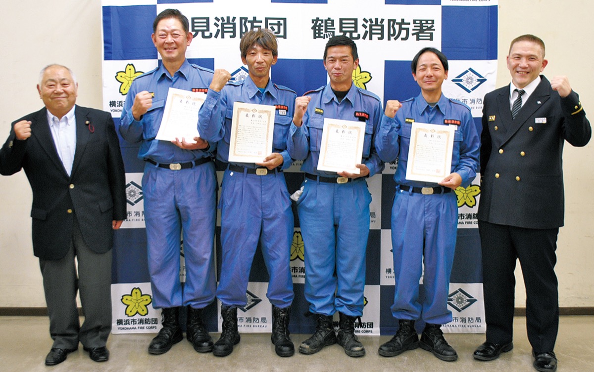 鶴見消防署は11月21日、北寺尾で発生した火災で消防隊の到着前に初期消火を行って火災の拡大を防いだとして、鶴見消防団の団員4人に表彰状を贈呈した。
