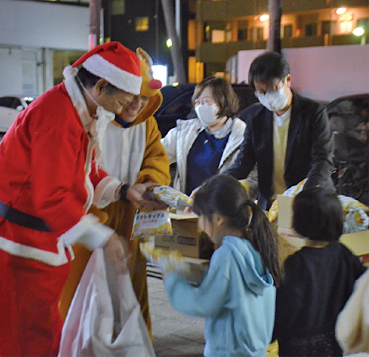また、同会館の外では実行委がサンタクロースに扮して子どもたちにお菓子を配り、長い列ができていた。実行委の1人、田中清さんは「寺尾地区自治連合会は東日本大震災を機に14年前から参加を始めた。まだまだこれからの部分もあるが、皆さんと楽しみながら活動していきたい」と笑顔で話した。