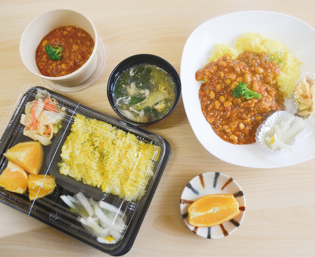 食事は高齢者でも安心して食べられるよう、メニューや栄養バランスなどをヘルスメイトたちが考案。食材はフードバンクや近隣店舗などからの寄付で調達した。
