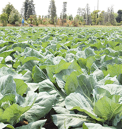 菅田・羽沢の農業専用地区で栽培されている春キャベツの収穫が、最盛期を迎えている。