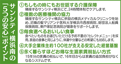 さらに充実した共用スペースで行われるサークルや文化活動などを通じて楽しみと変化に富んだシニアライフを提供。隣接する敷地に2005年にオープンした「サンシティ横浜」は、480室の契約率が99・4%に達しており、その人気の高さを物語っている。