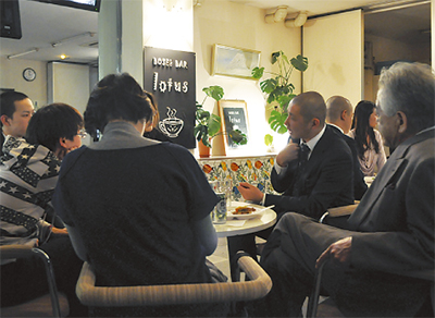 訪れるのは主に30〜40代の社会人で、中には地域のママ友同士や過去に事故で大けがを負ってしまった人、外国人、家族連れなどもいる。落ち着いた雰囲気の店内で、それぞれ僧侶やほかの客との会話を楽しむ。毎回20人〜30人ほどの客が訪れ、そのうちの半分ぐらいが信者ではない一般客だ。