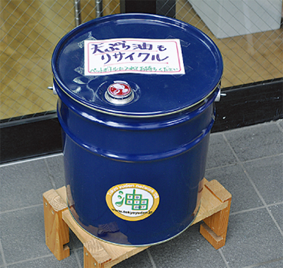 これは、資源循環型の社会づくりを目指す同店が家庭で使用済みになった食用油を工場で精製し、車の燃料(バイオディーゼル)やせっけん、塗料などとして再び使えるようにする取り組み。回収方法は、家庭で使用済みの天ぷら油をふた付き容器に入れて持参、店頭に設置された専用のペール缶に容器ごと入れる。誰でも参加は可能だという。