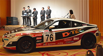神奈川トヨタ自動車(大塚輝一社長)=栄町=は2月20日、昨年に引き続きスポーツカー「86」と同一車型の兄弟車「スバルBRZ」のみが出場する市販車ベースのワンメイクレースに参戦することを発表し、今年の参戦車両を横浜ベイシェラトンホテル&タワーズで披露した。