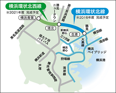 現在建設中で、16年度完成予定の「横浜環状北線」と港北ICで接続すれば、市北西部と横浜都心・湾岸エリアとの連絡が飛躍的に強化される。市の実測によると、東名高速横浜町田IC―横浜港への所要時間が保土ケ谷バイパス経由で約40〜60分かかっていたものが約20分に短縮される見込み。また、緊急車両の通行や物資の輸送などによる防災面の強化、保土ケ谷バイパスの渋滞解消などの効果が期待されている。