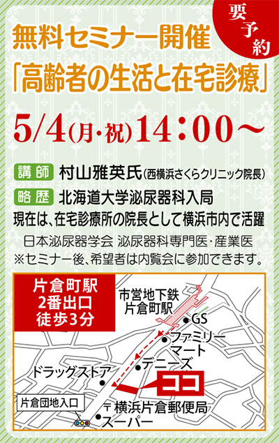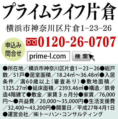 出版取次大手「トーハン」グループが、介護大手「学研ココファン」と業務提携した初のサービス付高齢者向け住宅『プライムライフ片倉』が4月1日、片倉町にオープンした。すでに半数近くの居室が成約済みという。5月4日(月・祝)には、提携医療機関「西横浜さくらクリニック」院長村山雅英氏による無料セミナーが開催される。