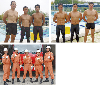 要救助者1人を救助する「溺者救助」に出場した1係(松野裕介隊員、松下景虎(かげとら)隊員、大石昭人隊員)は、昨年の県大会優勝チームに匹敵する29秒4で2位入賞した。「安定した力が出せている。目標の28秒台が出れば、結果もついてくると思う」と意気込む。