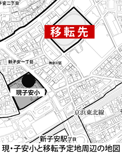 児童増加傾向にある横浜市立子安小学校(宮生和郎校長)は、2018年度に旧日産グランド=新子安1の36の1〜3=への移転を予定している。7月21日には、地域の会合で市教委担当者らによる現状での整備計画について報告があり、建設時に関する要望など様々な意見が交わされた。