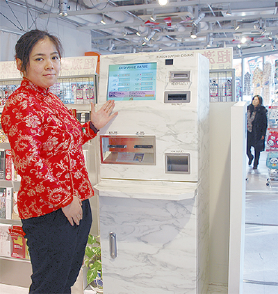 横浜中華街のインフォメーションセンター「China Town80」=中区山下町80=内に12月末、8種類の外貨に対応した両替機が設置された。
