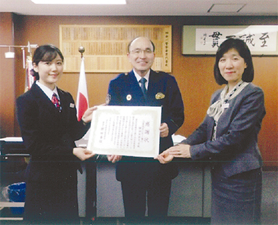 三菱東京UFJ銀行横浜白楽支店の安田若菜さん(23)が振り込め詐欺を未然に防いだとして4月5日、神奈川警察署の横田善信署長から感謝状が贈られた。