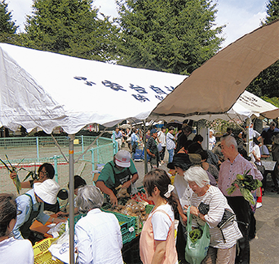 子安台自治会(秋馬正弘会長)と農業ボランティアグループ「かなっぱ畑の会」(山田牧美会長)が共催して7月23日、地産野菜の販売会「青空サロン」を子安台第二公園で開いた=写真。