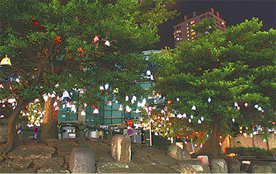 同地区の開発コンセプトである”アート&デザインの街づくり”に取り組む地権者企業17社による「ヨコハマポートサイド街づくり協議会」が企画するこのイベント。事前に行われたワークショップに参加した地元住民らの手作りした色とりどりのLEDランタンが、金港公園や地区内の街路樹などの木々を彩る。