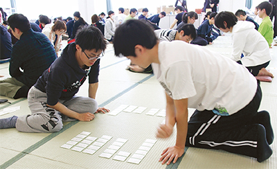 第98回全国競技かるた横浜大会が1月22日、神奈川トヨタ自動車=栄町=で行われ、A〜C級の有段者たちが各カテゴリーで対戦した=写真。今大会は地元企業43社が協賛する地域密着の大会となった。