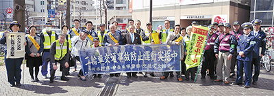 「春の全国交通安全運動」(4月6日〜15日)にちなみ、イオン東神奈川店前で6日、交通安全キャンペーンが行われた。