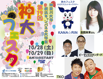 神奈川大学横浜キャンパスで10月28日(土)、29日(日)の2日間にかけて「第19回神大フェスタ」が開催される。神大フェスタ実行委員会(中村勇志委員長)主催。今年は「笑顔満祭〜みんな笑いな祭〜」がテーマ。17個の盛り沢山の企画で来場者、参加者、運営者の笑顔を作りだす。