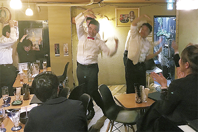 同イベントに参加する、スープカレー屋でバルのSPICEnineでは例年、店内にパフォーマンスができるステージをつくり、「流し」などのパフォーマーが場を盛り上げている。