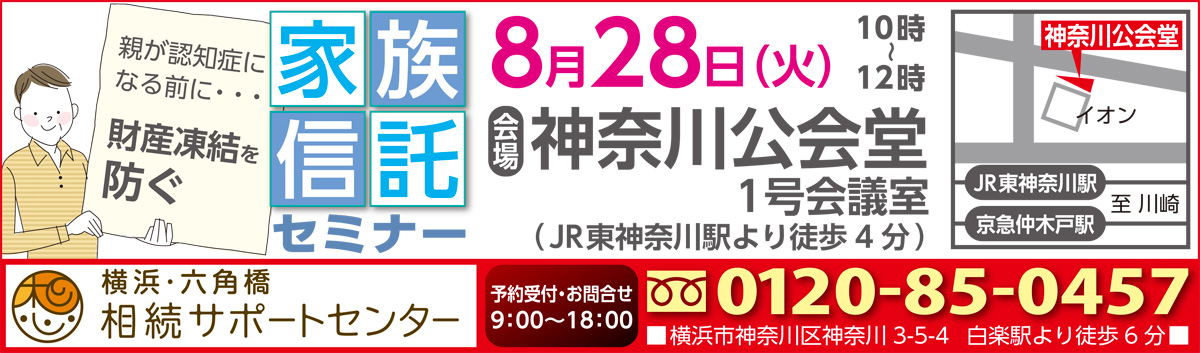 お盆を機に改めて家族の今後を考えるこの時期―。神奈川公会堂では8月28日(火)(午前10時から正午)、「相続サポートセンター」が開催する「家族信託セミナー」が行われる。