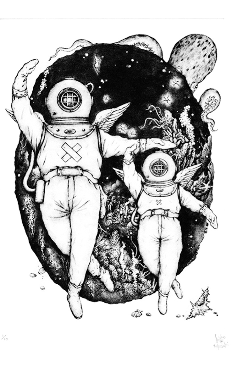 同氏は姉妹画廊で行われた「第6回FEI PRINT AWARD」の準大賞者。自身の作品について「独自の幻想世界で愛と勇気を表現したい」と語る銅版画家だ。