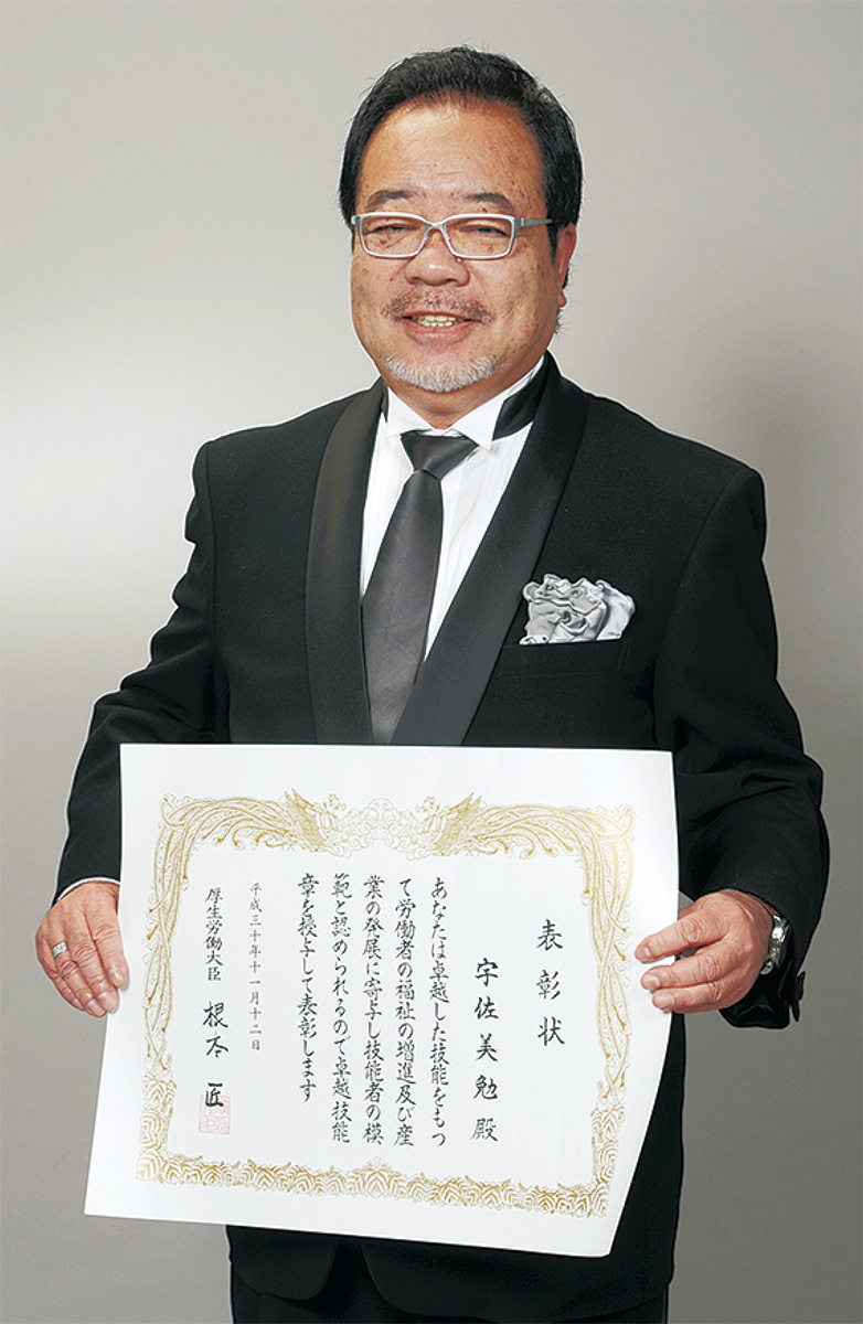 宇佐美さんは卓越した技能を持つ人を表彰する「現代の名工」に選ばれた。県内の理容師として6年ぶり8人目の快挙だ。東京都内での表彰式を終え「身に余る光栄です」と感想を述べた。
