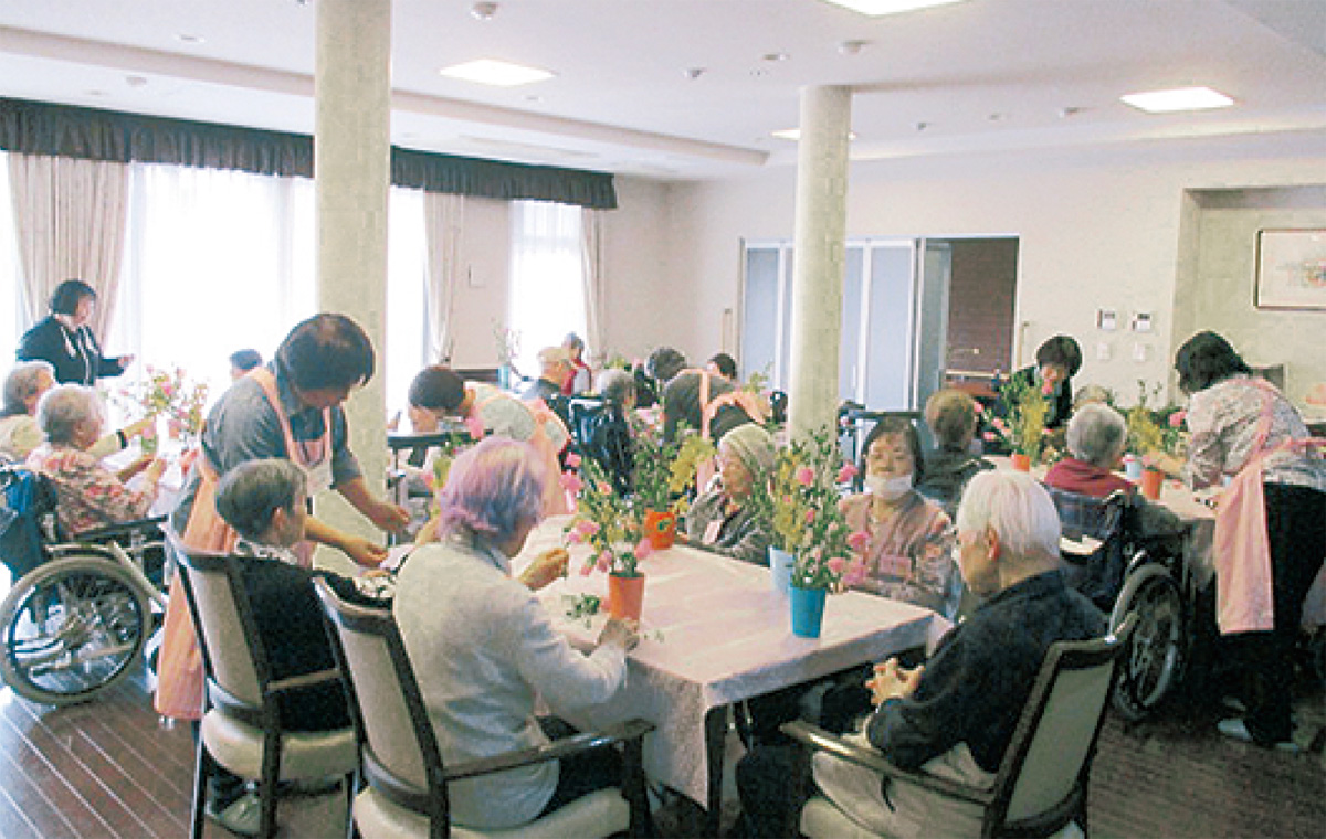 日々の散歩や外出、外食会などはもちろん、お正月、夏祭り、クリスマスなど季節に応じた多彩なイベント、レクリエーションを開催。外出の機会も多く設けられている。