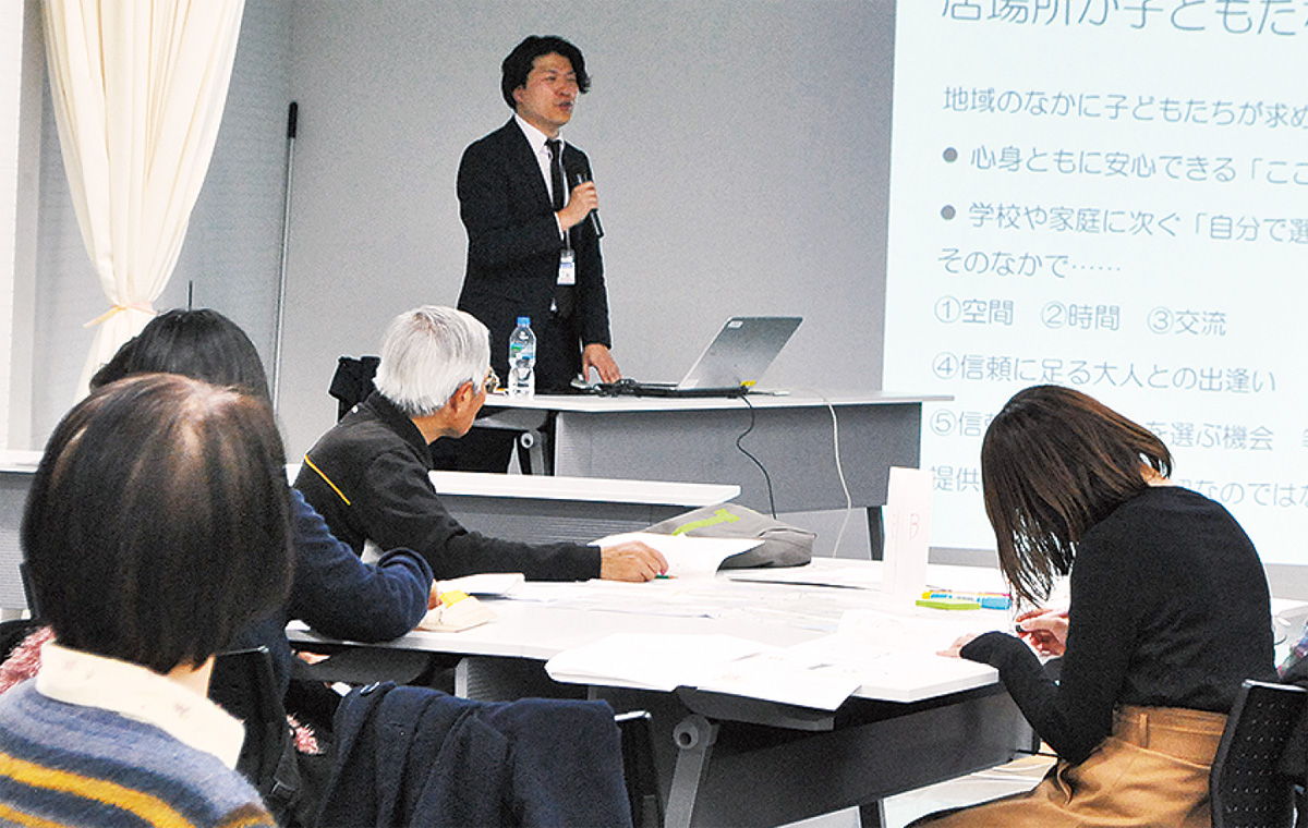 今回は児童福祉の専門家であるスクールソーシャルワーカーの遠藤建人氏を講師に招き、「子どもに寄り添う地域の役割について」をテーマとした講座と「フラワープロジェクト」についてのワークショップが行われた。