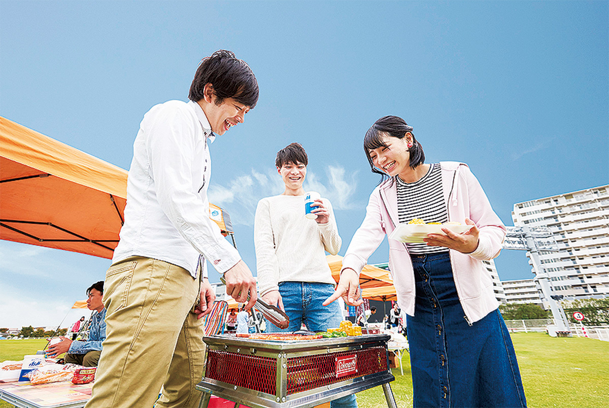 川崎競馬場バーベキューといえば、手入れの行き届いた気持ちのいい芝生で、手ぶらでバーベキューを楽しめると毎年大好評。