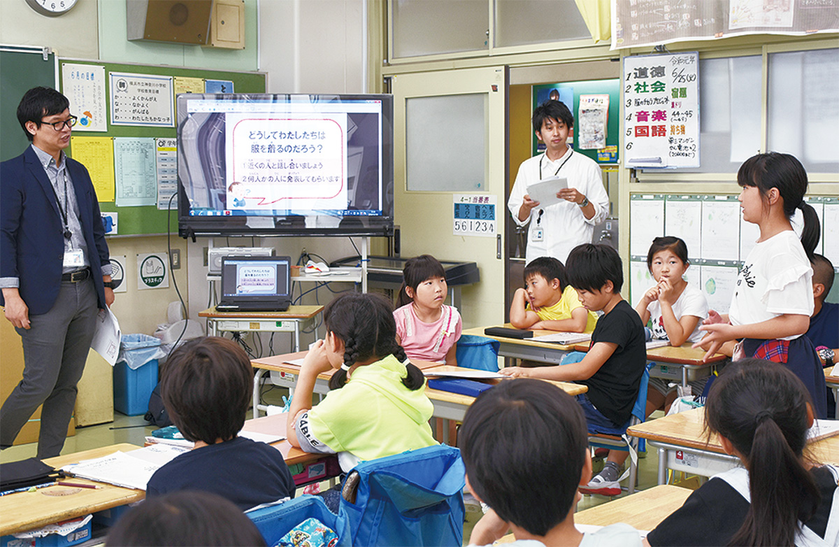 神奈川小学校4年1組の児童たちが6月25日、ユニクロやジーユーを手掛ける(株)ファーストリテイリングの社員による「”届けよう、服のチカラ”プロジェクト」の出張授業を受けた。