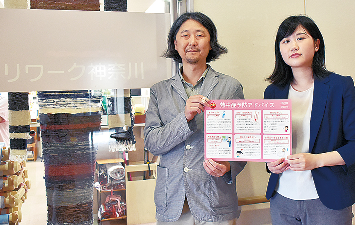 大口仲町の(株)協進印刷(江森克治社長)は社会貢献の一環として「熱中症予防アドバイスボード」を制作し、高齢者が利用する施設に寄贈する試みを実施している。7月18日には、NPO法人中途障害者地域活動センターリワーク神奈川で贈呈式が行われた。