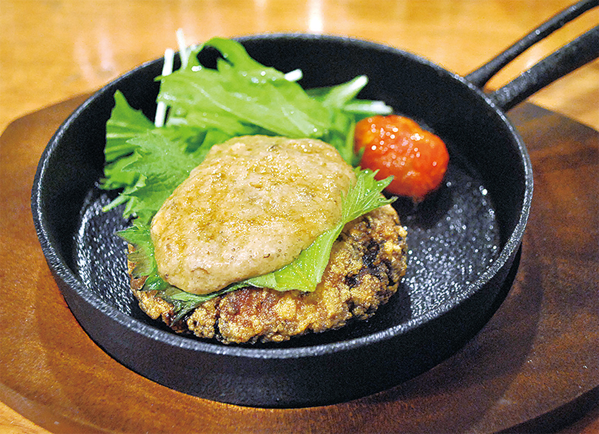 田中店長は「ハンバーグという切り口で居酒屋ならどんな表現ができるかを考え、おもしろいと思ってもらえたらいいなと考案した。肉と自然薯の分量の比率など何度も試作して試行錯誤したメニューです」と思い入れを語った。